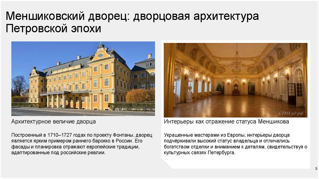 Меншиковский дворец: дворцовая архитектураПетровской эпохи