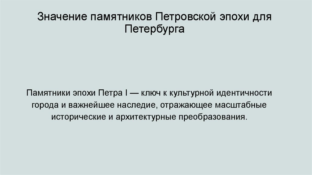Значение памятников Петровской эпохи дляПетербурга
