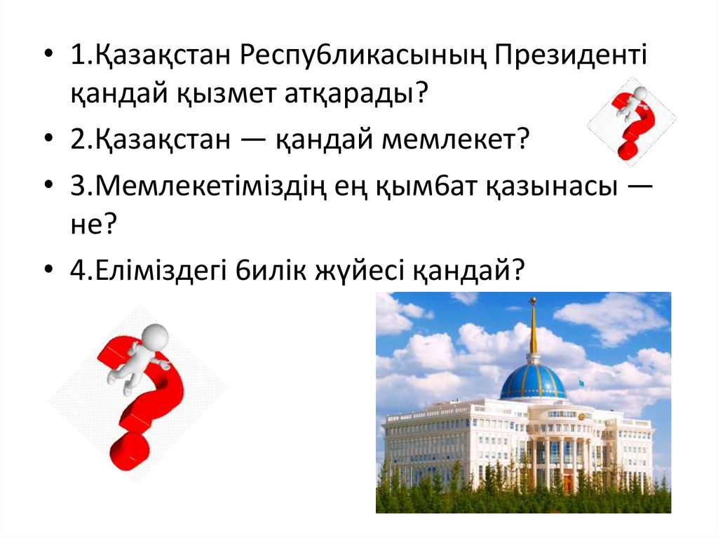 • 1.Қазақстан Респу6ликасының Президентіқандай қызмет атқарады?
