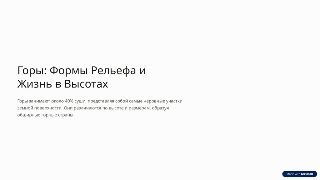 Разнообразие Горных ЛандшафтовГоры редко встречаются поодиночке; чаще это цепи хребтов, вытянутые на