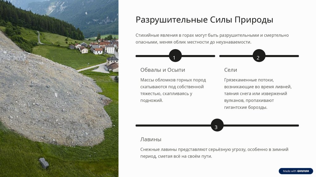 Разрушительные Силы ПриродыСтихийные явления в горах могут быть разрушительными и смертельно