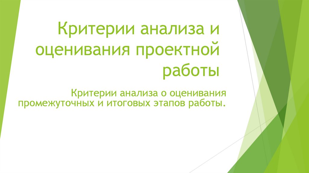 Критерии анализа о оцениванияпромежуточных и итоговых этапов работы.