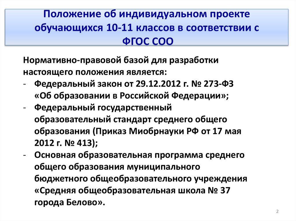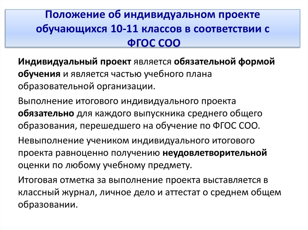 Положение об индивидуальном проектеобучающихся 10-11 классов в соответствии с