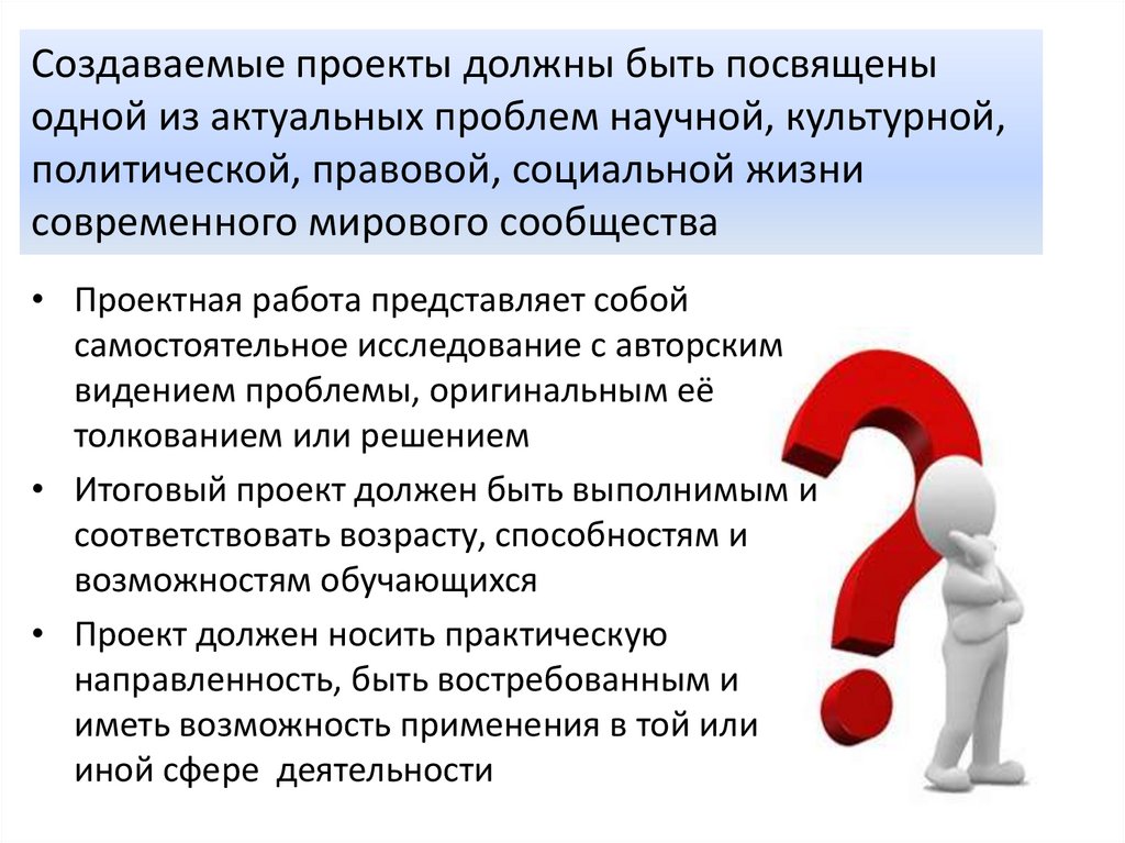 Создаваемые проекты должны быть посвященыодной из актуальных проблем научной, культурной,
