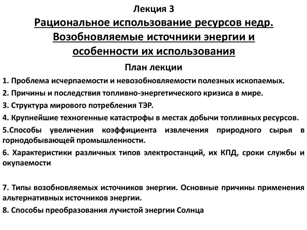 1. Лекция 3 Рациональное использование ресурсов недр. Возобновляемые источники энергии и особенности их использования
