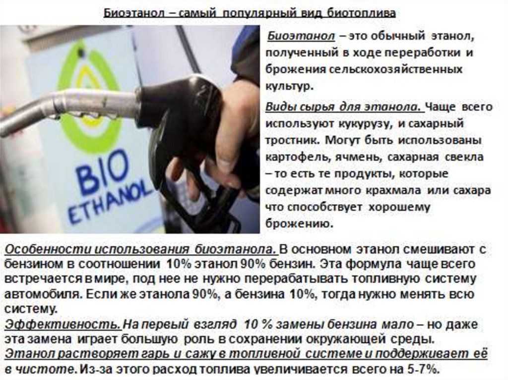 . Наибольшее применение нашли два вида жидкого биотоплива: биоэтанол и биодизель
