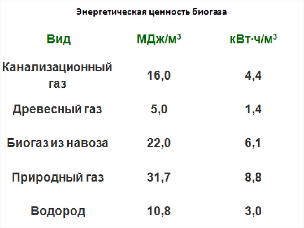 Содержание энергии в биогазе напрямую зависит от содержания в нем метана. Из одного