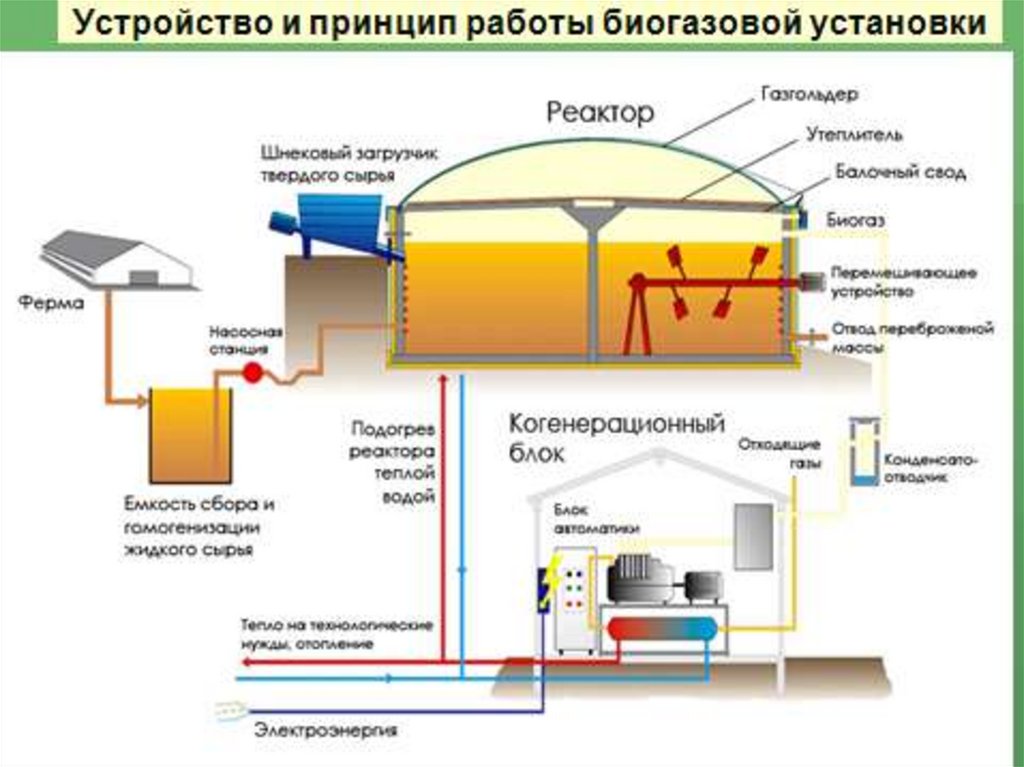 Биогаз - это горючая газовая смесь, состоящая на 50...70% из метана, которая образуется из