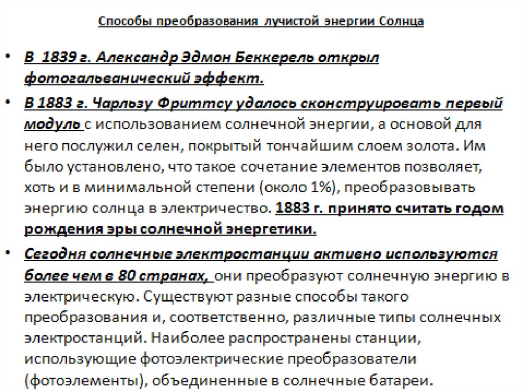 источников энергии, связанных в том числе и с энергией Солнца. По сравнению с нефтью,