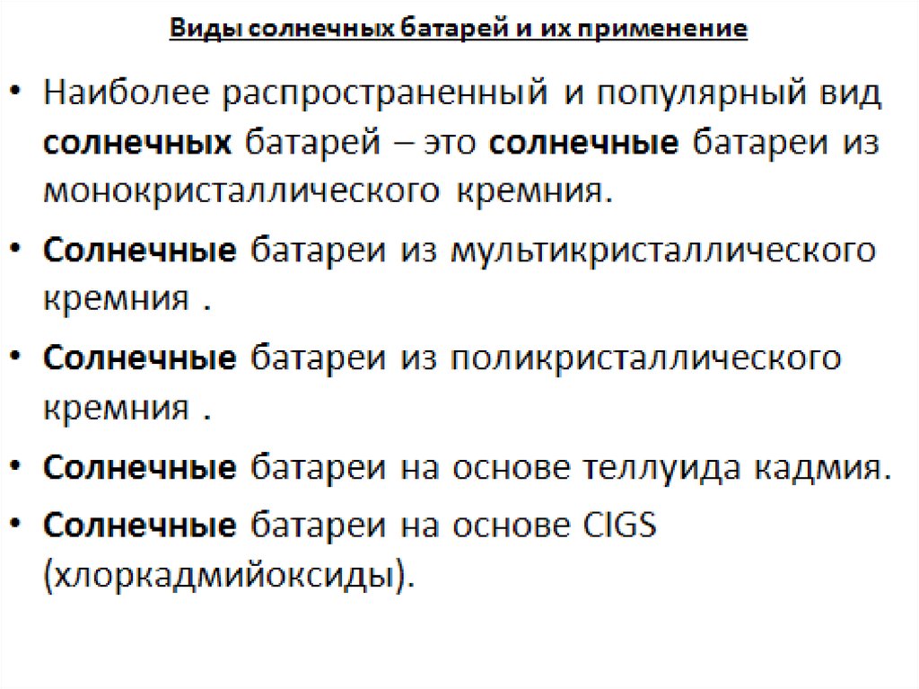 9. Виды фотоэлектрических преобразователей, солнечныхбатарей и коллекторов