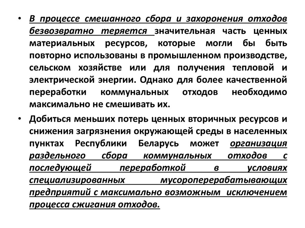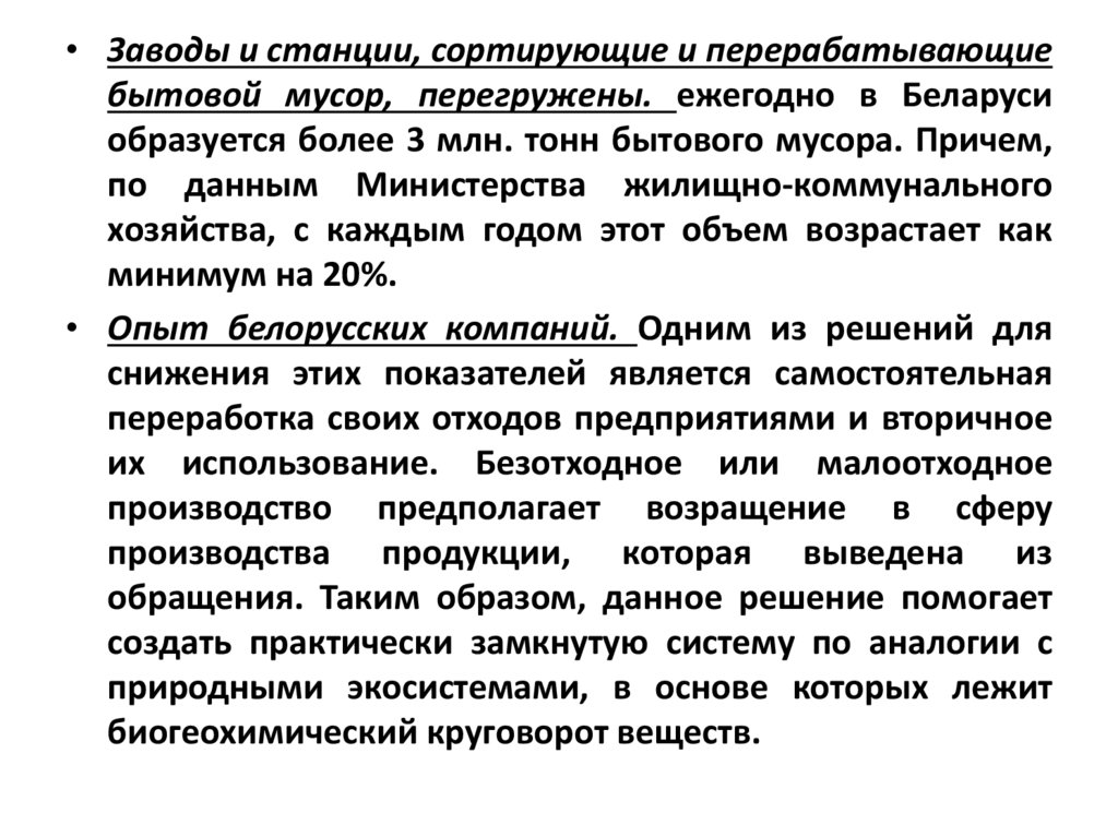 • Проблема с утилизацией отходов актуальна и для Беларуси.