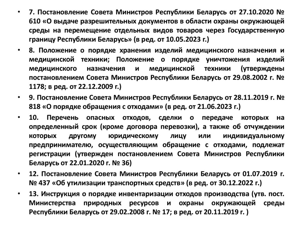 6. Перечень НПА и ТНПА в области обращения с отходами на 01.09.2023 г.