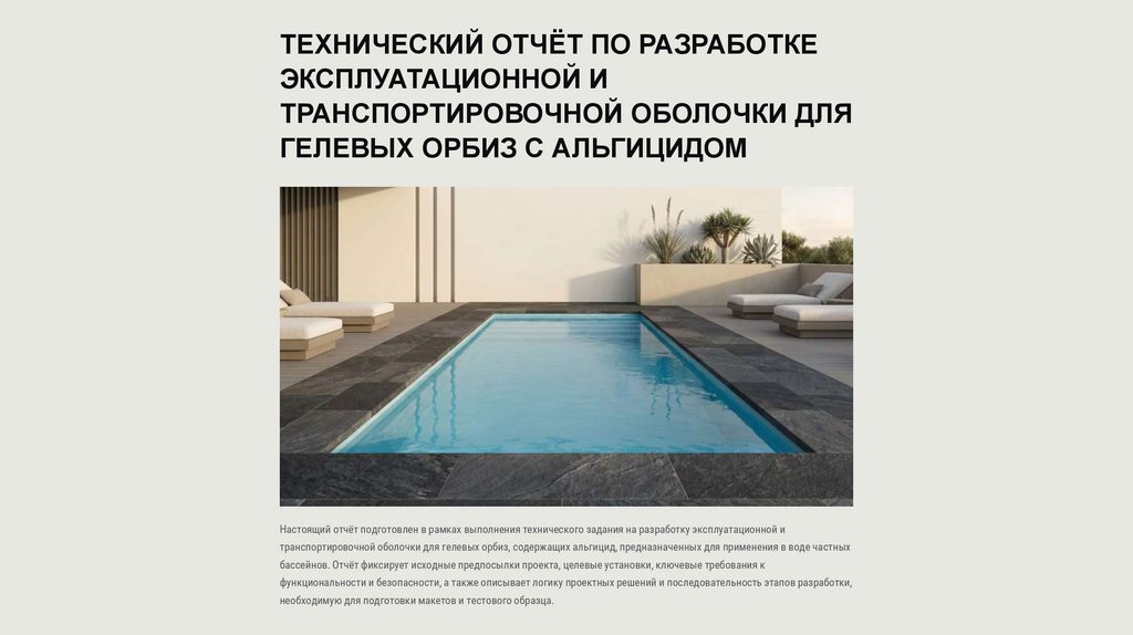 бассейнов. Отчёт фиксирует исходные предпосылки проекта, целевые установки, ключевые требования к