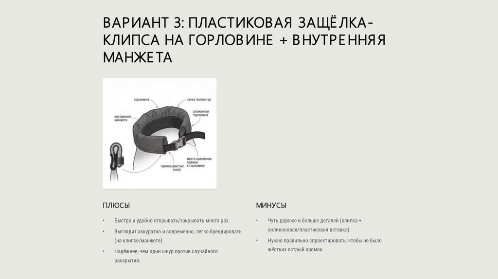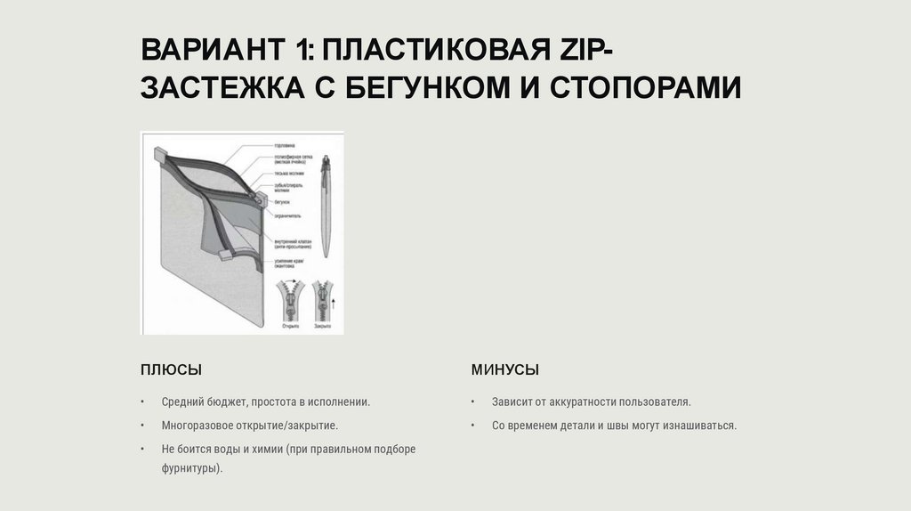 ВАРИАНТ 1: ПЛАСТИКОВАЯ ZIPЗАСТЕЖКА С БЕГУНКОМ И СТОПОРАМИПЛЮСЫ
