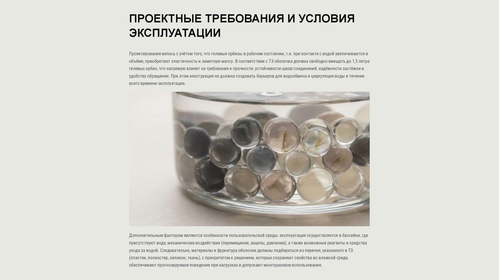 гелевых орбиз, что напрямую влияет на требования к прочности, устойчивости швов/соединений, надёжности застёжки и