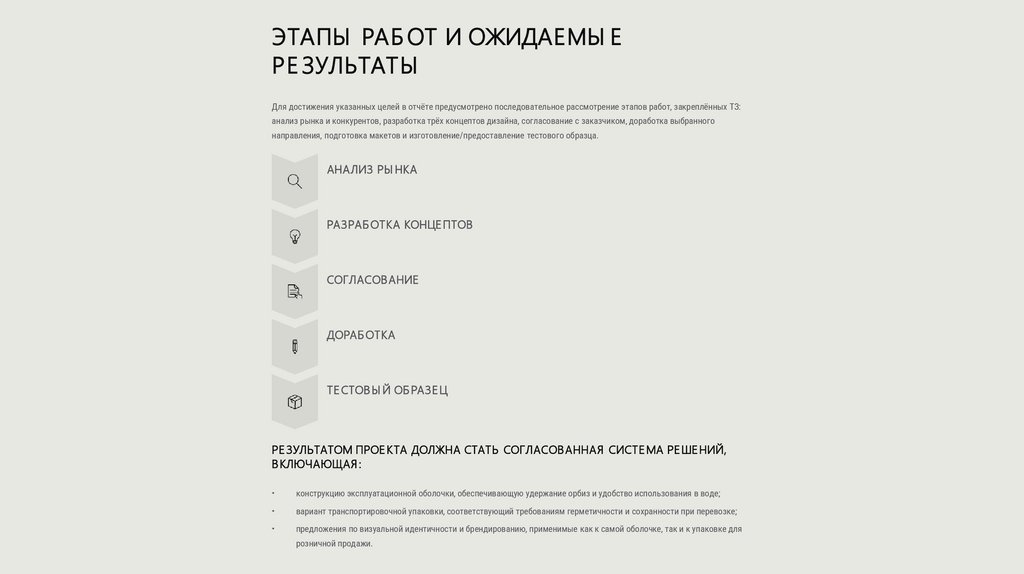 анализ рынка и конкурентов, разработка трёх концептов дизайна, согласование с заказчиком, доработка выбранного