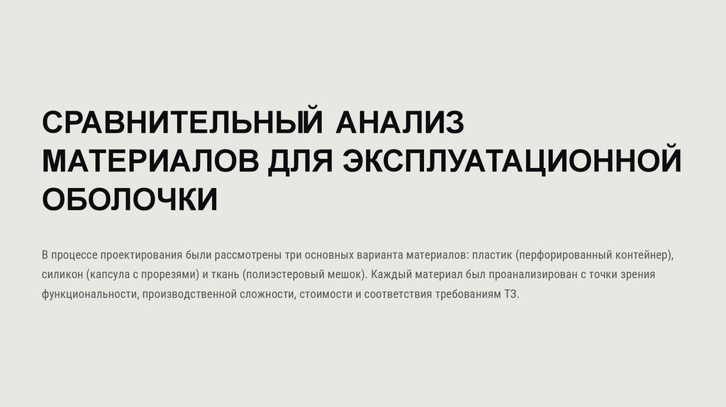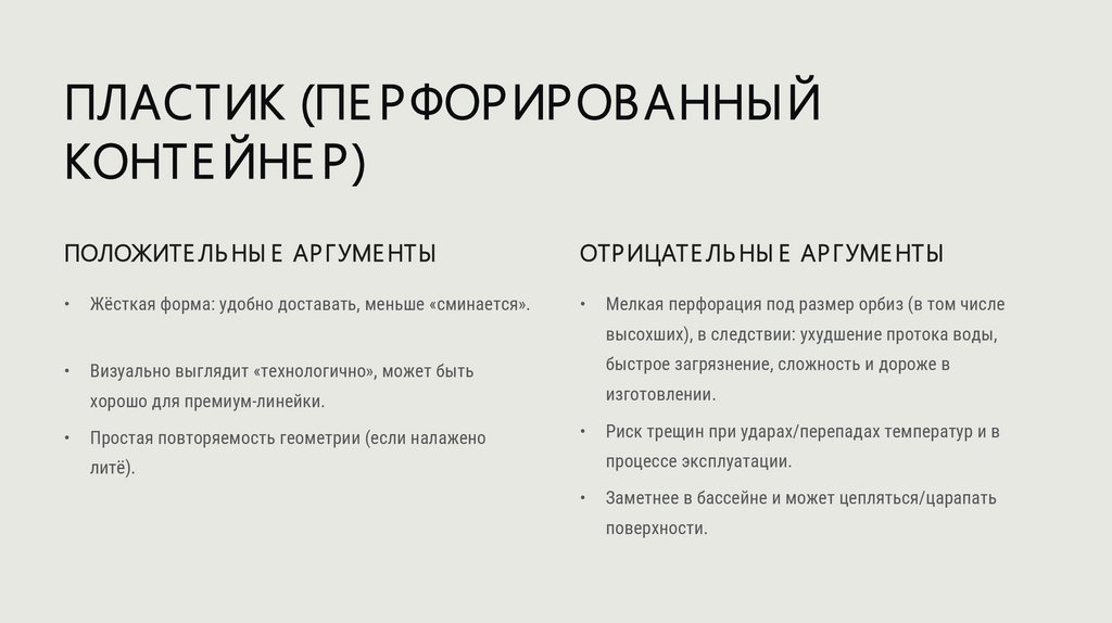 В процессе проектирования были рассмотрены три основных варианта материалов: пластик (перфорированный контейнер),