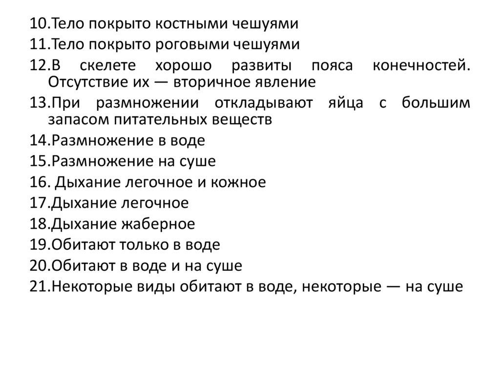 10.Тело покрыто костными чешуями11.Тело покрыто роговыми чешуями