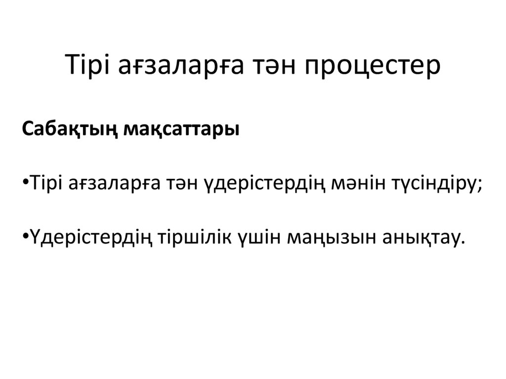 Сабақтың мақсаттары•Тірі ағзаларға тән үдерістердің мәнін түсіндіру;