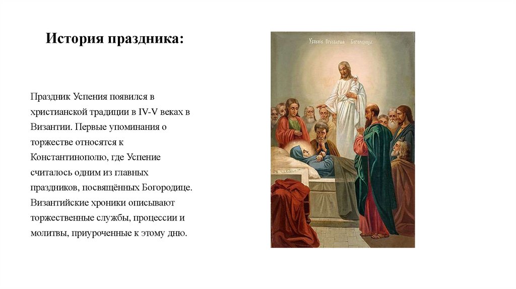 История праздника:Праздник Успения появился в