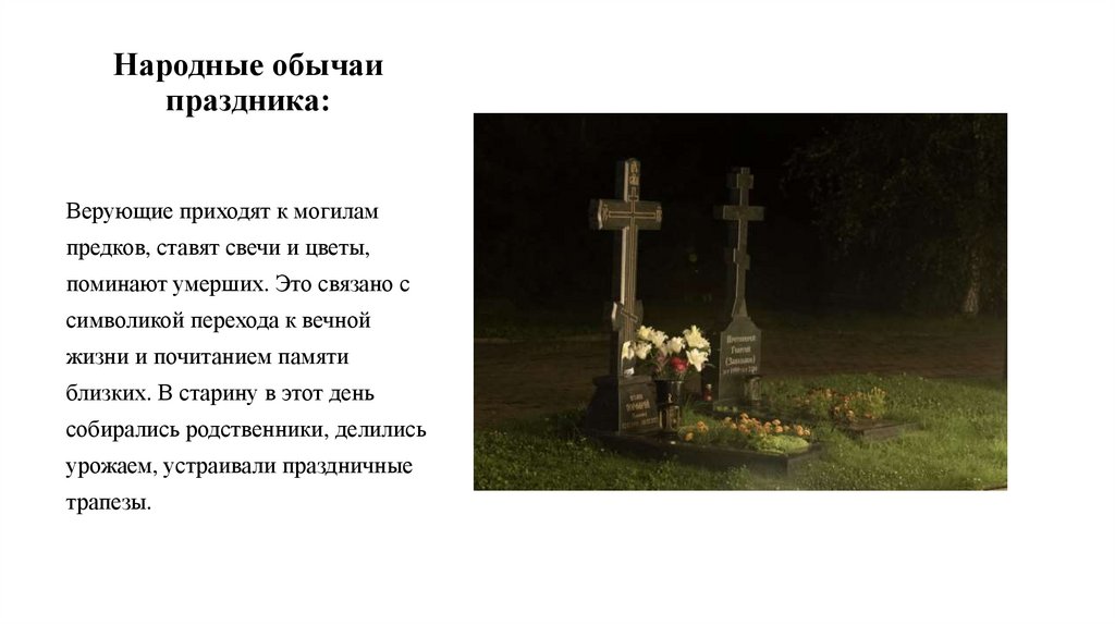 предков, ставят свечи и цветы,