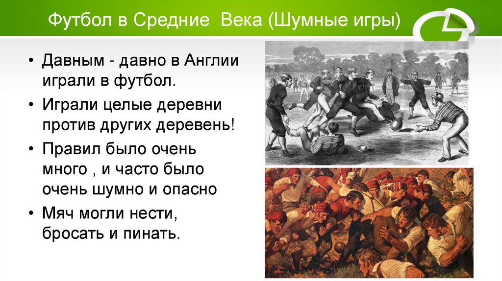Футбол в Средние Века (Шумные игры)• Давным - давно в Англии