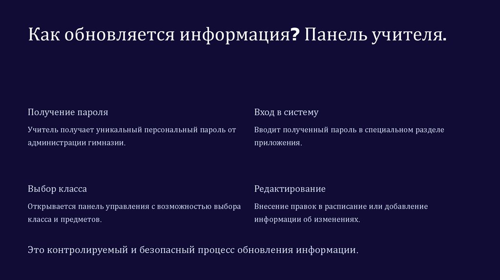 Как обновляется информация? Панель учителя.Получение пароля