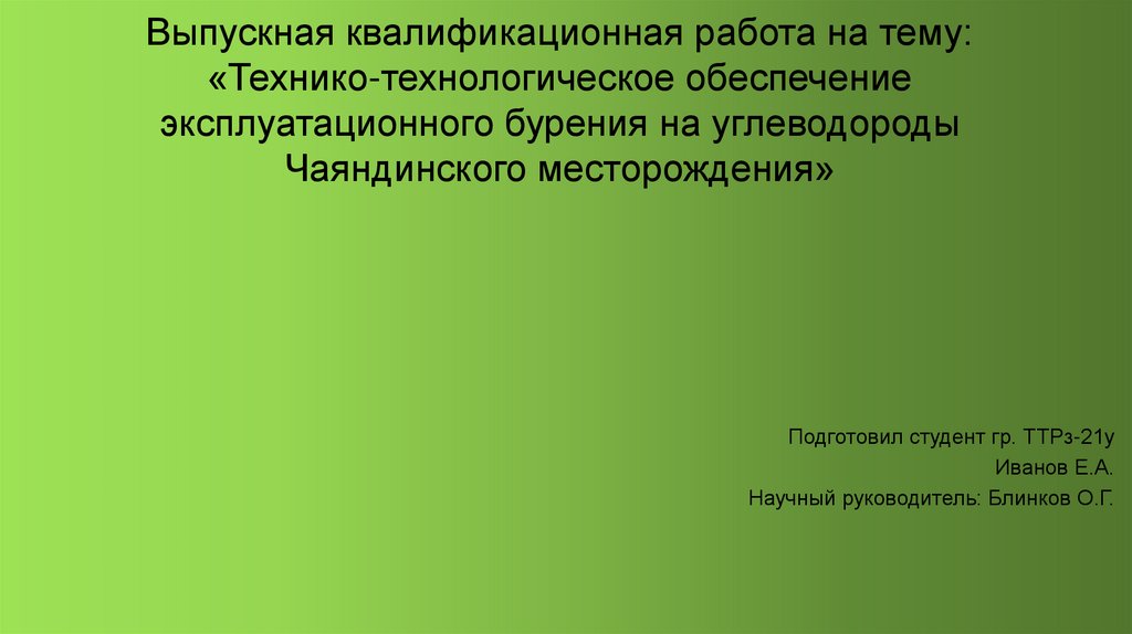 Выпускная квалификационная работа на тему:«Технико-технологическое обеспечение
