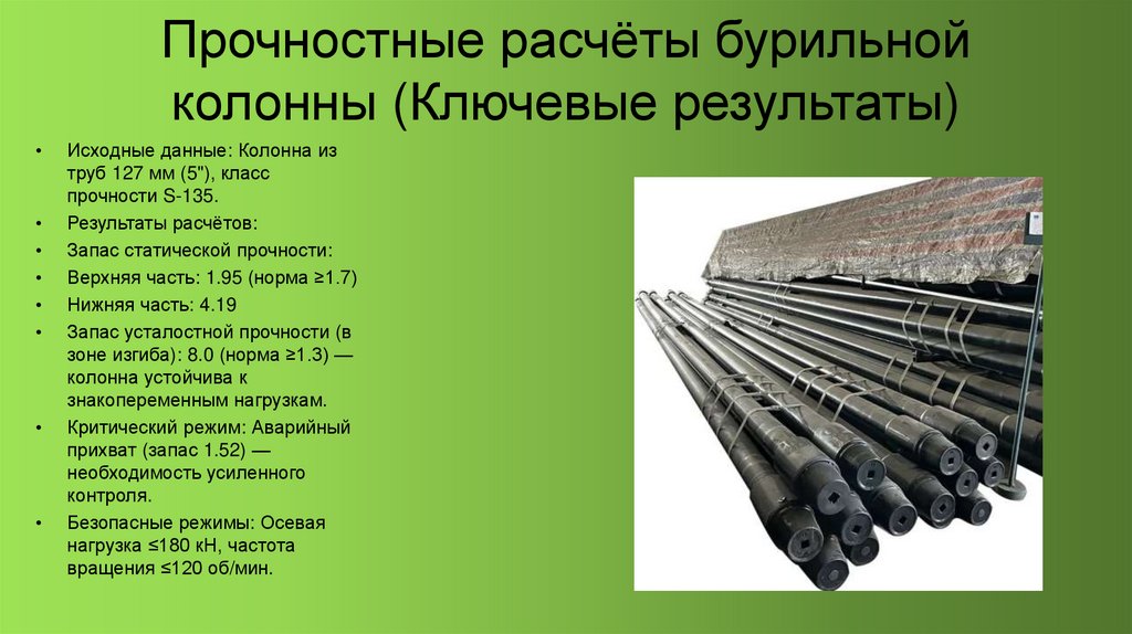 • Прочностные расчёты подтвердили надёжность бурильной колонны и