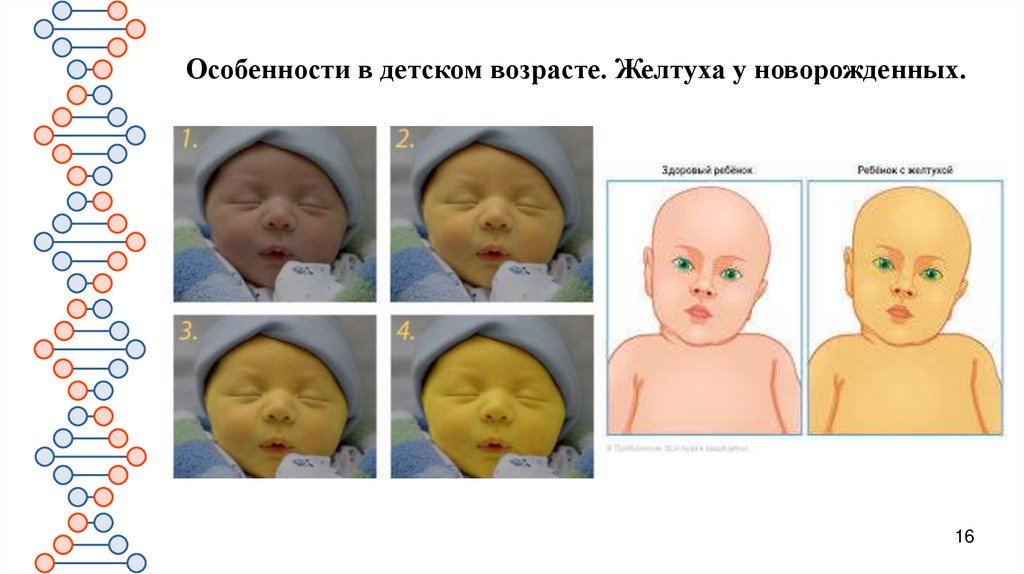 Особенности в детском возрасте. Желтуха у новорожденных.16