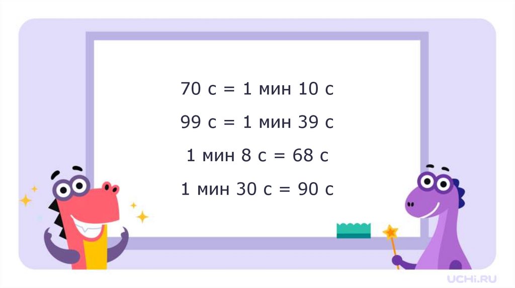 70 с = 1 мин 10 с99 с = 1 мин 39 с