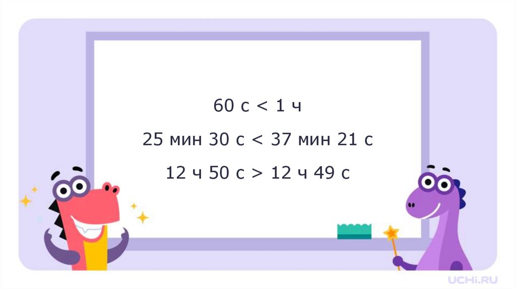 60 с < 1 ч25 мин 30 с < 37 мин 21 с