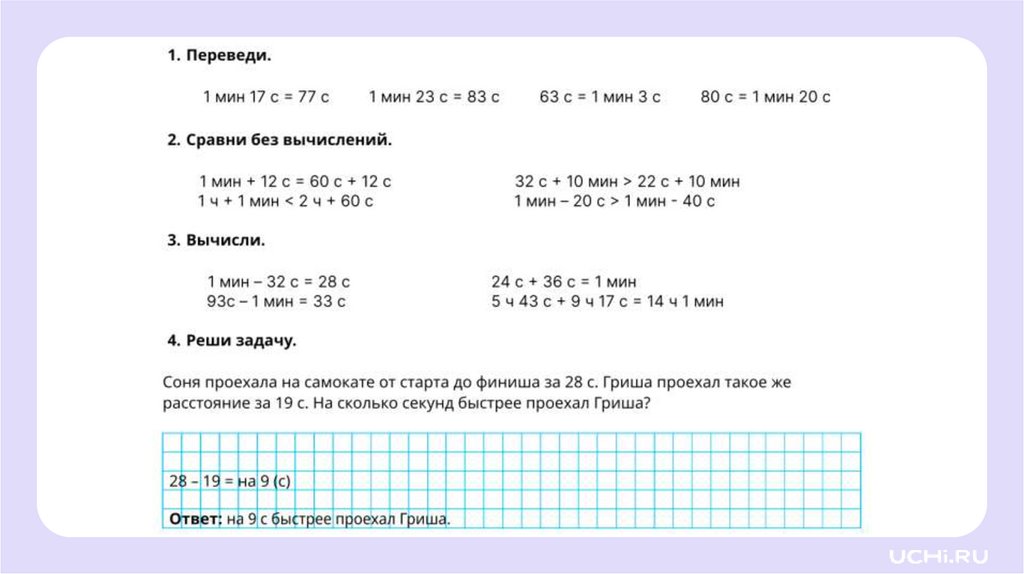 Математика_ 3 класс_ Время (единица времени — секунда)- установление отношения быстрее- медленнее на-в
