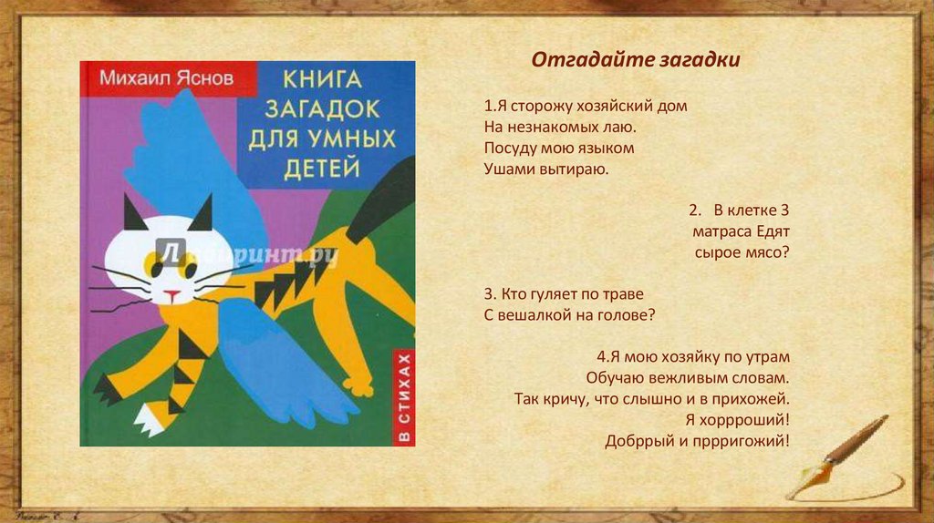 Отгадайте загадки1.Я сторожу хозяйский дом