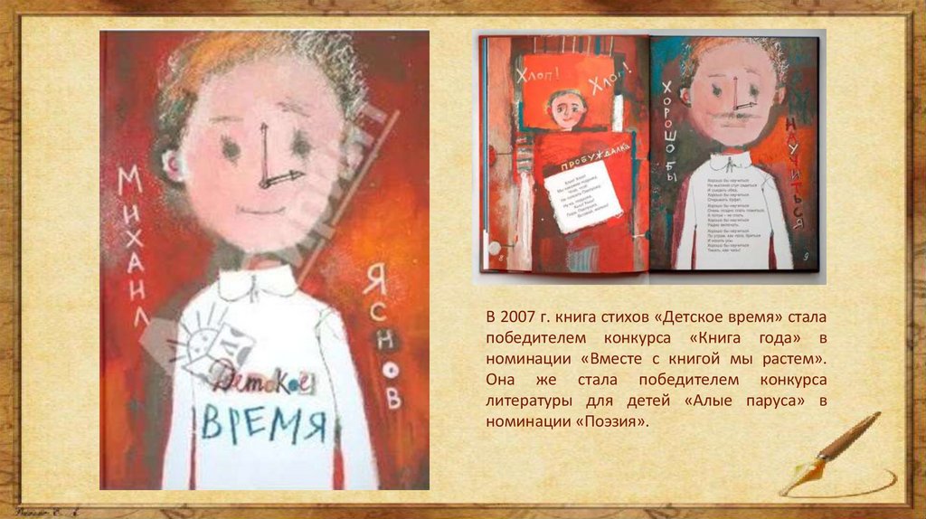 В 2007 г. книга стихов «Детское время» сталапобедителем конкурса «Книга года» в