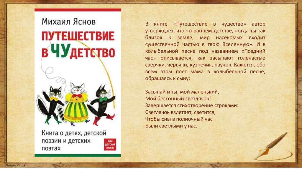 В книге «Путешествие в чудество» авторутверждает, что «в раннем детстве, когда ты так