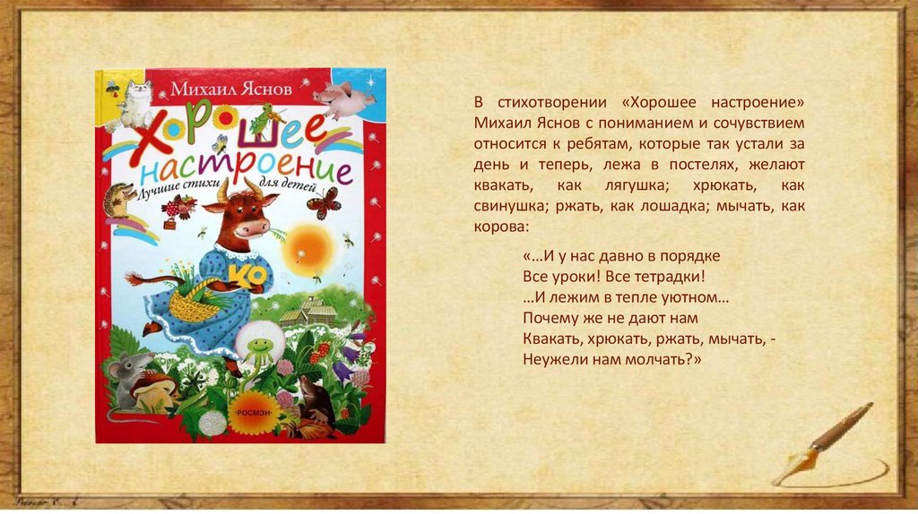 В стихотворении «Хорошее настроение»Михаил Яснов с пониманием и сочувствием