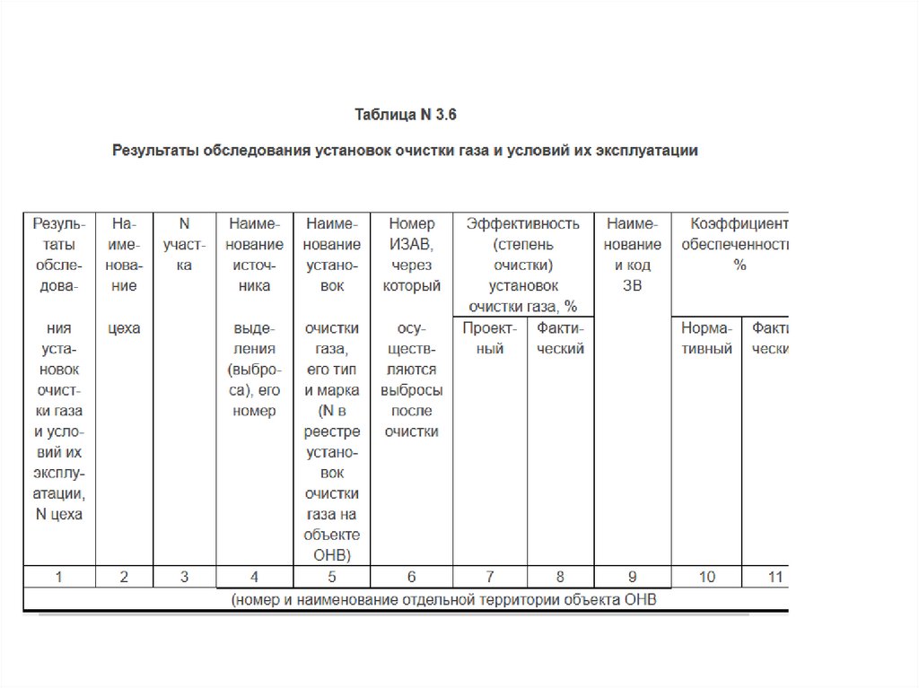 показателями выбросов и данными последней инвентаризации