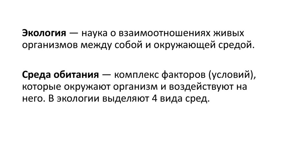 Экология — наука о взаимоотношениях живыхорганизмов между собой и окружающей средой.