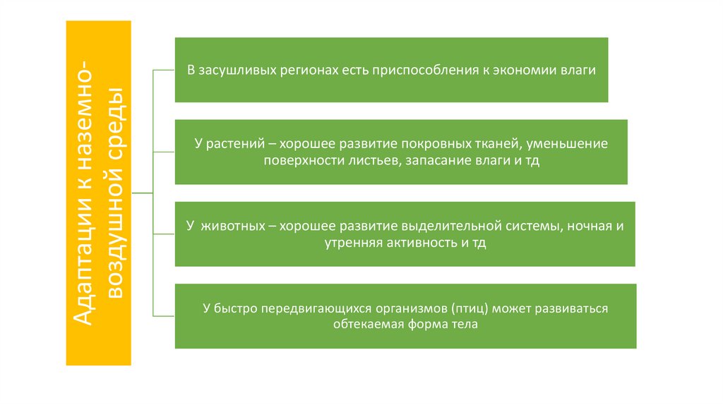 Адаптации к наземновоздушной средыВ засушливых регионах есть приспособления к экономии влаги