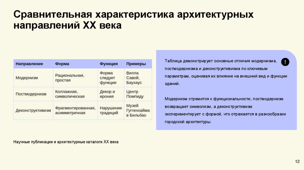 Таблица демонстрирует основные отличия модернизма,
