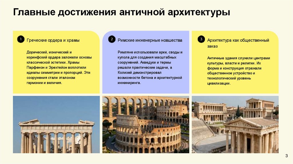 Главные достижения античной архитектурыГреческие ордера и храмы