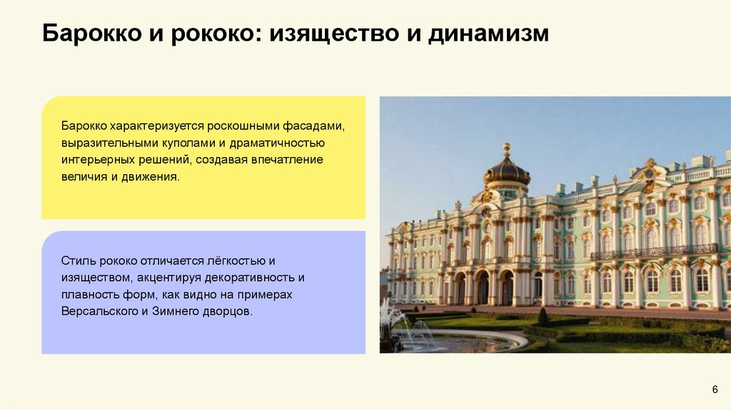 Барокко и рококо: изящество и динамизмБарокко характеризуется роскошными фасадами,