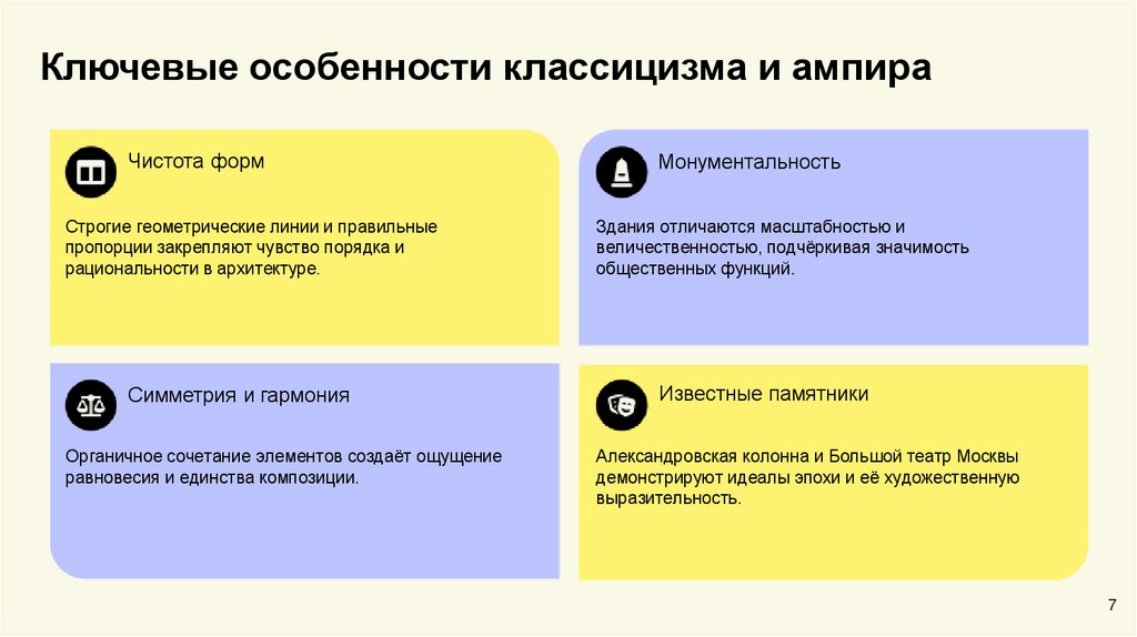 Ключевые особенности классицизма и ампираЧистота форм
