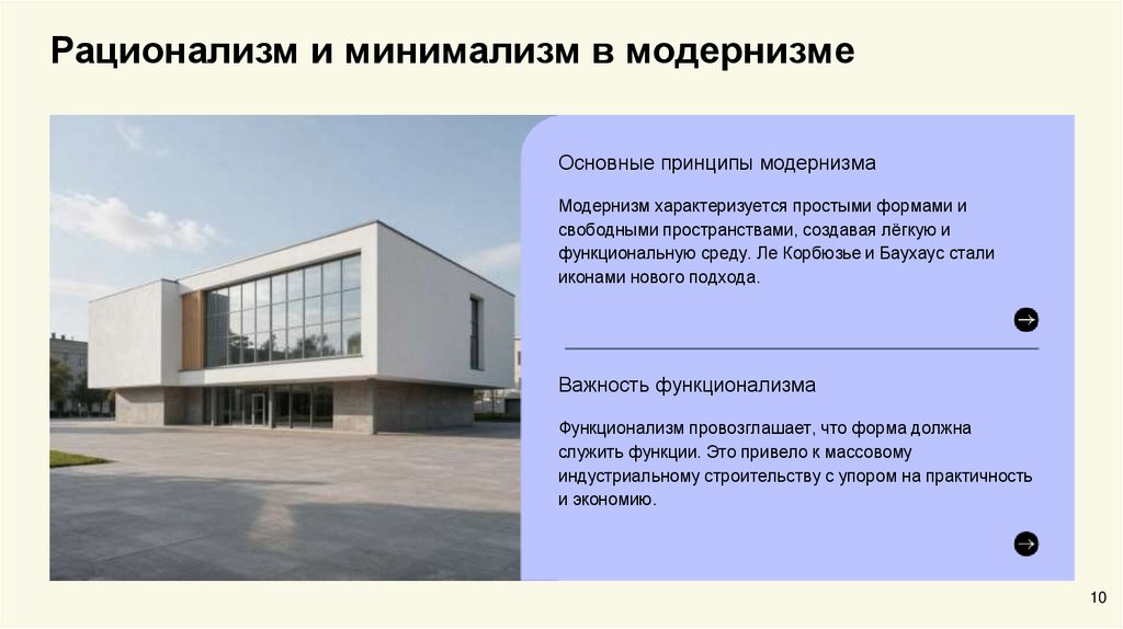 Рационализм и минимализм в модернизмеОсновные принципы модернизма