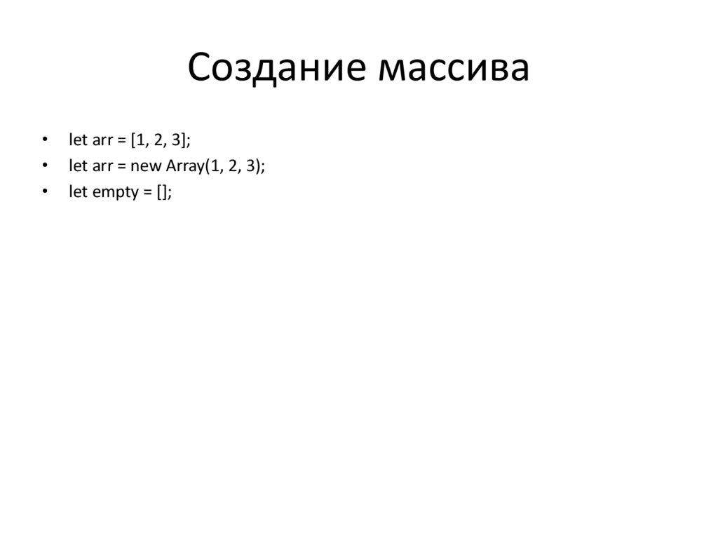 Создание массиваlet arr = [1, 2, 3];