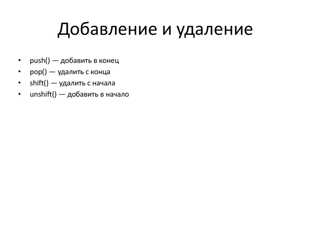 Добавление и удалениеpush() — добавить в конец