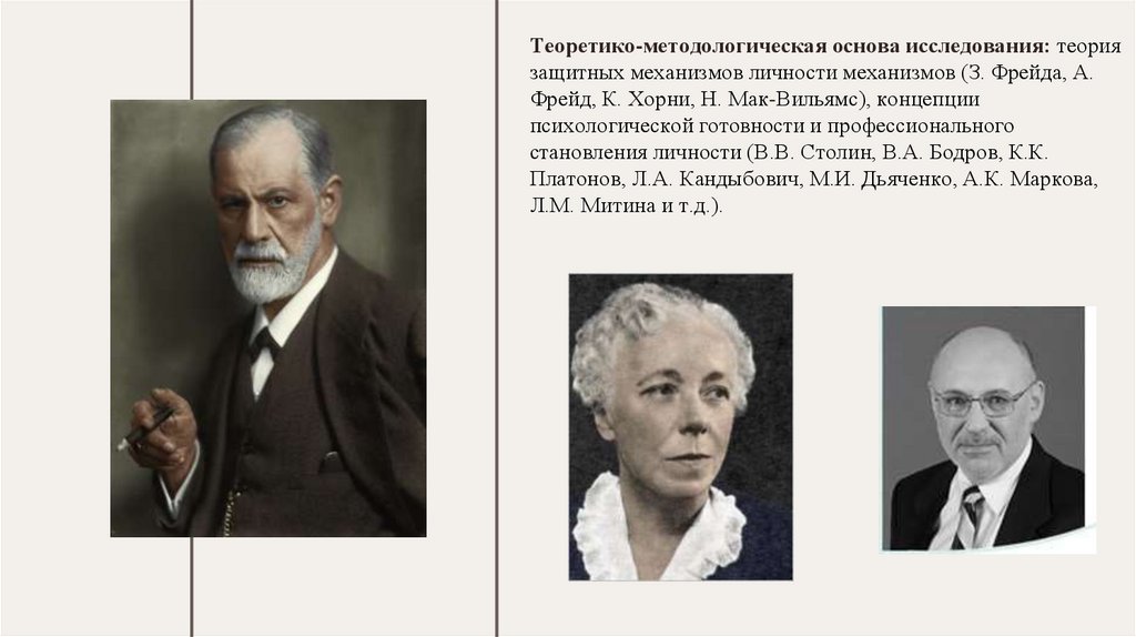 Теоретико-методологическая основа исследования: теориязащитных механизмов личности механизмов (З. Фрейда, А.