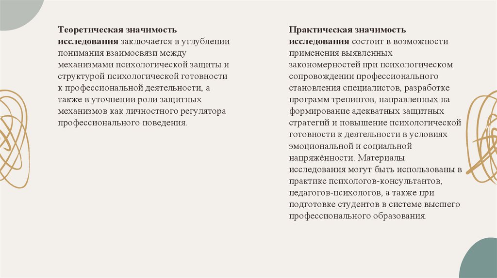 Проведённое исследование показало, что психологическаяготовность к профессиональной деятельности опосредована не