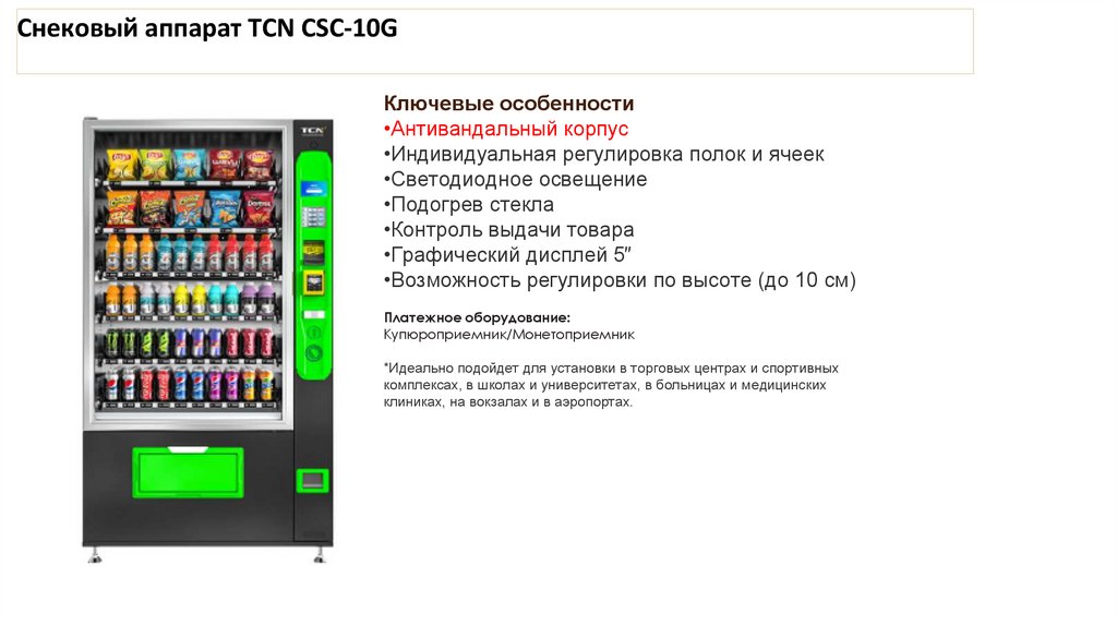 Снековый автомат TCN CSC-10G предназначен для эффективной продажи различных